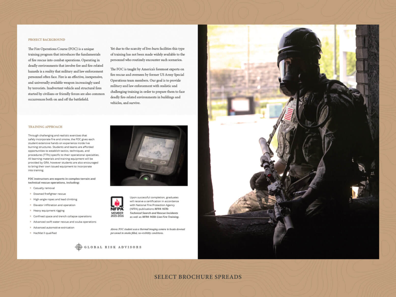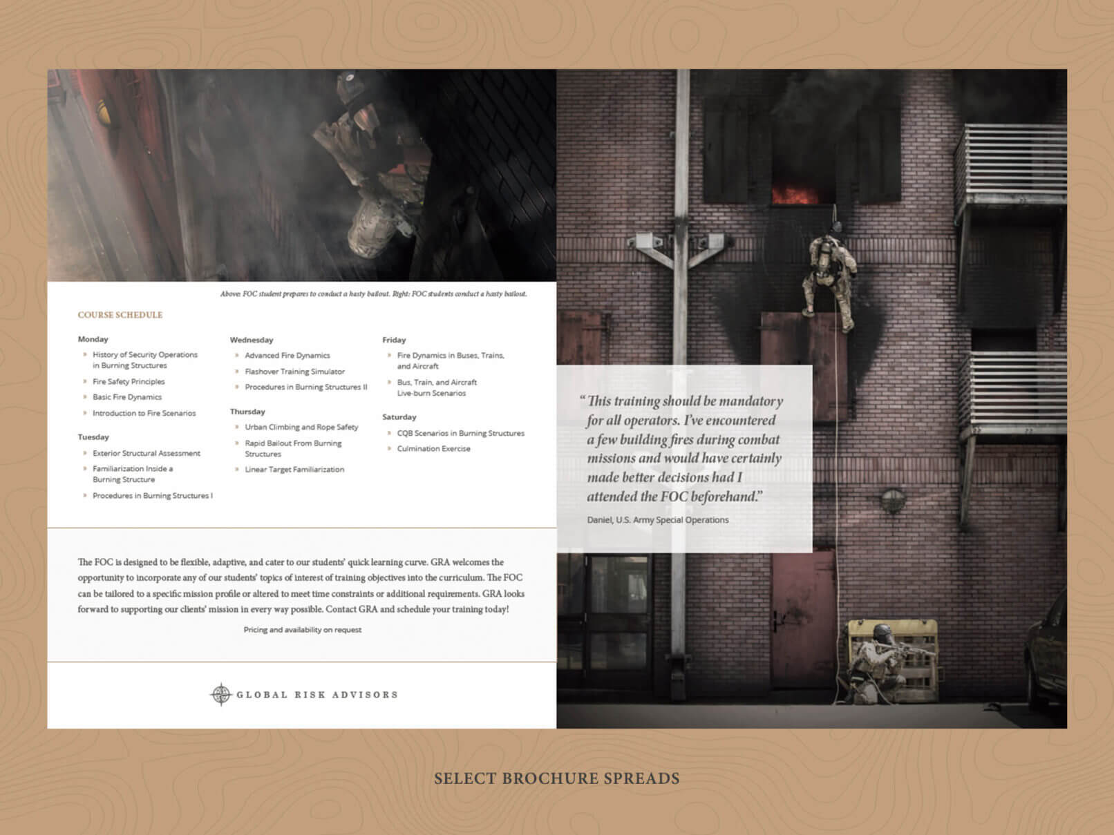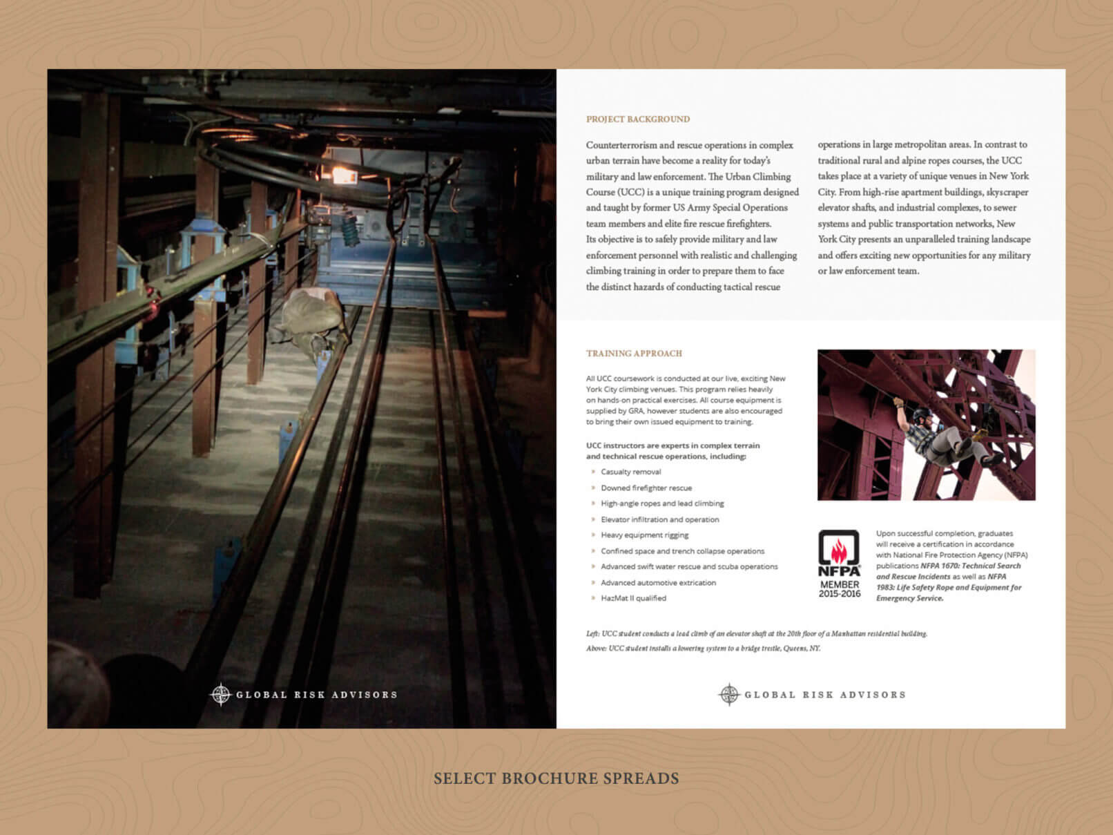 Brochures for specific services were also designed to match this branding. These services have since been taken over by Global Risk Advisor’s sister company GRA Maven.