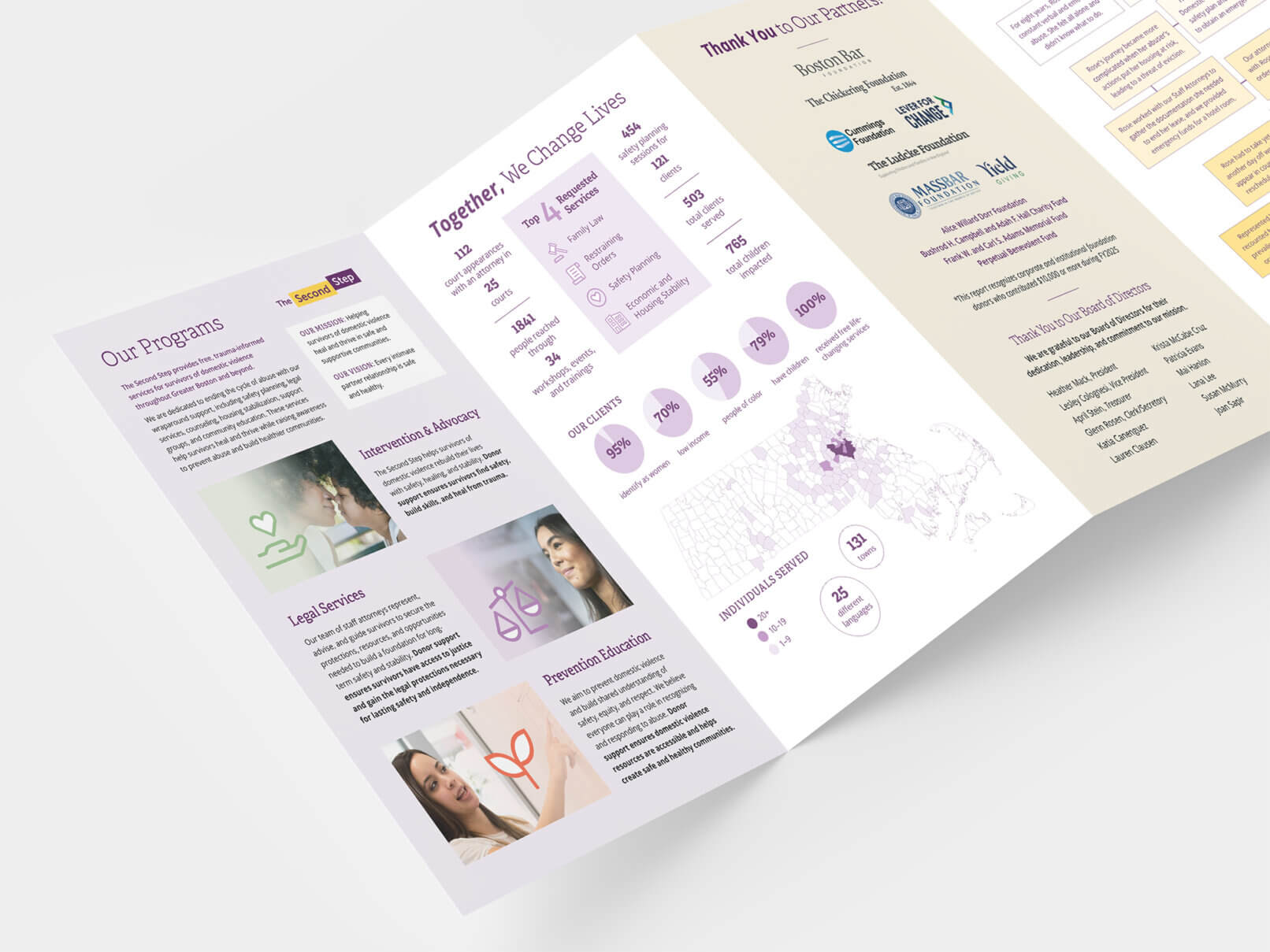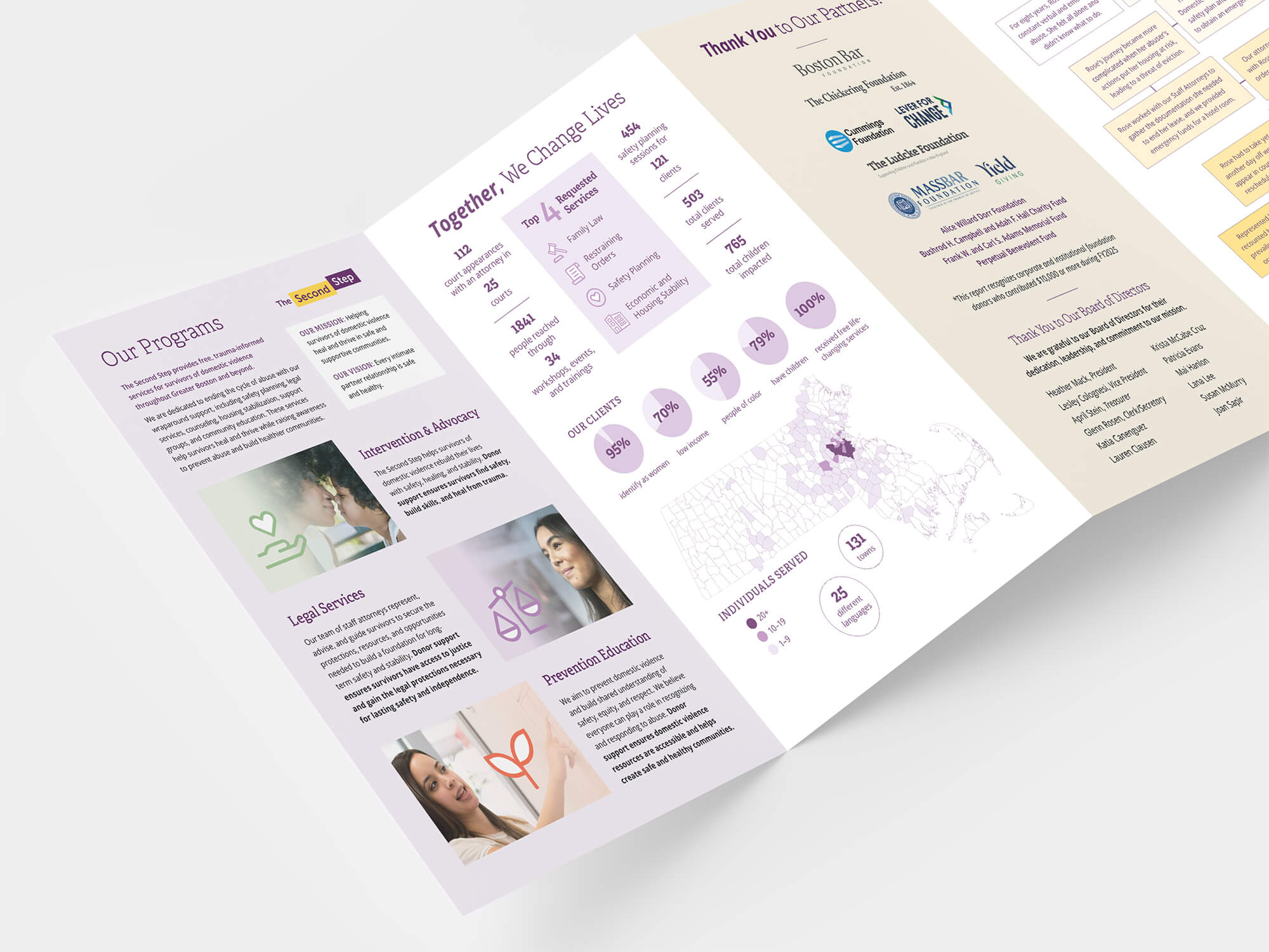 Website, event and supporting brand collateral for The Second Step, a non-profit providing comprehensive services for survivors of domestic violence.